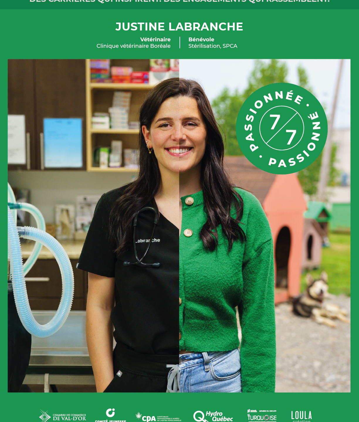 La campagne met en lumière les jeunes qui ont choisi de rester ou de revenir, et montre qu’ici, on peut bâtir un réseau solide tout en alliant carrière, qualité de vie et engagement communautaire. Sur le site Web de la CCVD, on invite les gens à découvrir le parcours de Justine Labranche, vétérinaire et bénévole à la SPCA, Sophie de Carufel, maraîchère et présidente du Centre de la Petite Enfance La Magie du Rêve, Étienne Cloutier, associé chez MNP et impliqué dans plusieurs causes, David Boutin, co-propriétaire de Monsieur Debeaunavet et bénévole au Club Kinsmen de Val-d’Or, Jérémy Grégoire, conseiller en sport chez Loisir et Sport Abitibi-Témiscamingue et président du FRIMAT, ainsi que Marissa Couturier, artiste tatoueuse chez Tattoo-Piercing très impliquée socialement.